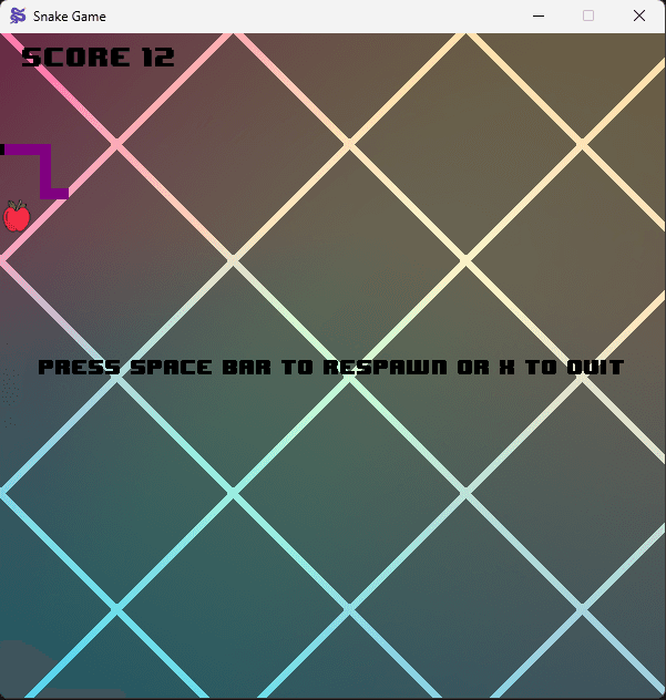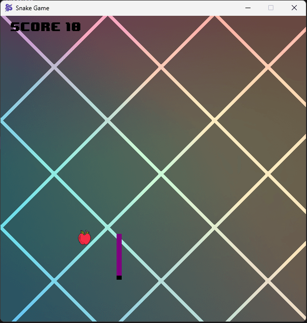 The snake game involves controlling the snake using arrow keys. The objective is to eat red apples to grow larger while avoiding collisions with the snake’s own tail or crossing the window borders. Each apple eaten increases the score. The game ends when the snake crosses the edge of the screen or accidentally touches itself.
